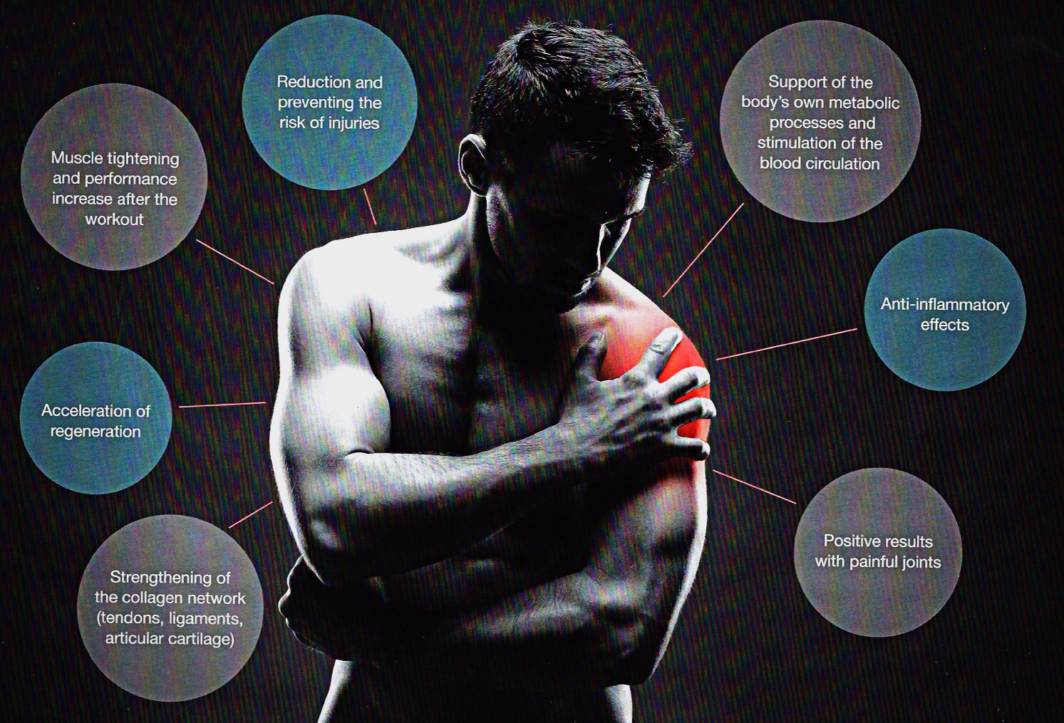 The tendon strength and tensile strength, bone flexibility and pressure resistance of joint cartilage are largely dependent on collagen in our tissue. When tanning on a collagen sunbed out muscles, tendons and joints become stronger. This treatment can reduce the risk of injury, the success in training is increased and regeneration after workout is faster.